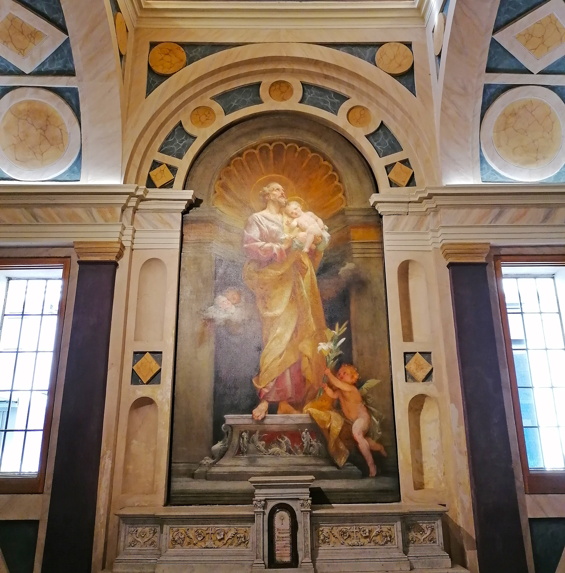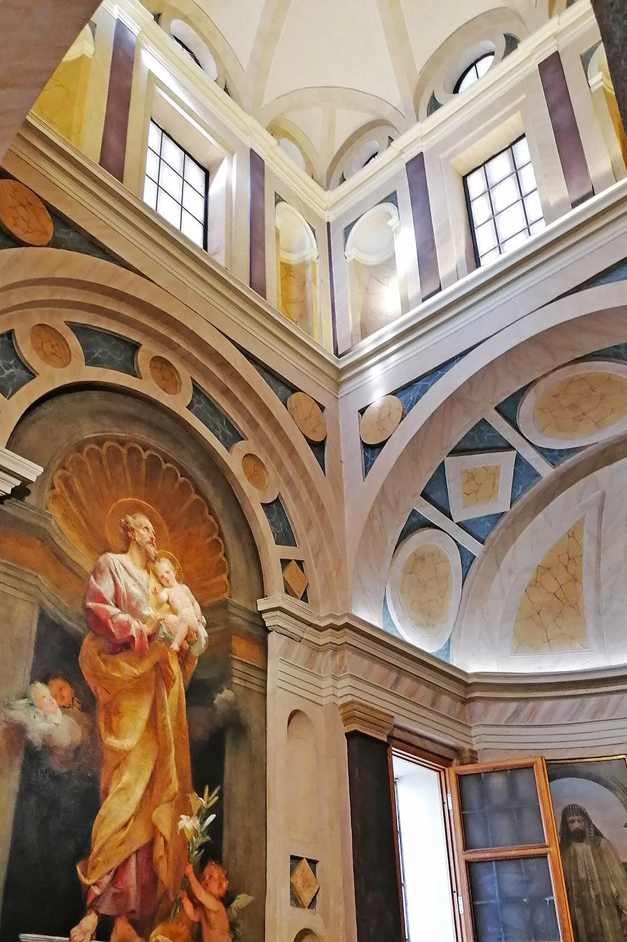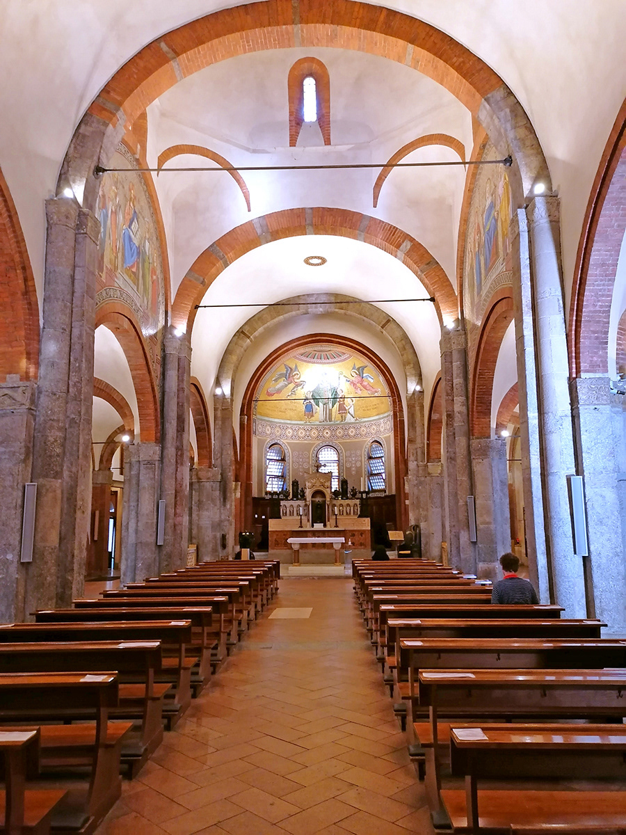 There is a very specific and well defined element in this church that makes everything feel balanced and in harmony: the perfectly symmetrical lateral chapels. As you continue you walk in the church, they accompany you and lead you in a splendid way, as you can stop reflecting and praying in front of each of them to different saints. Worth of mention the left side chapel, dedicated to Saint Joseph, holding an altarpiece by Ludovico Pogliaghi, the same author of the famous central door of Duomo Cathedral [1]