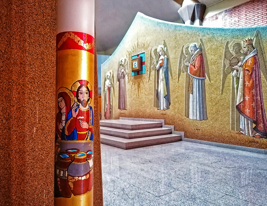 Be in complete silence while you hear the water pouring down from above in the baptistery. There you can see seven streams of water that symbolize the gifts of the Holy Spirit (wisdom, understanding, counsel, fortitude, knowledge, piety and fear of the Lord).