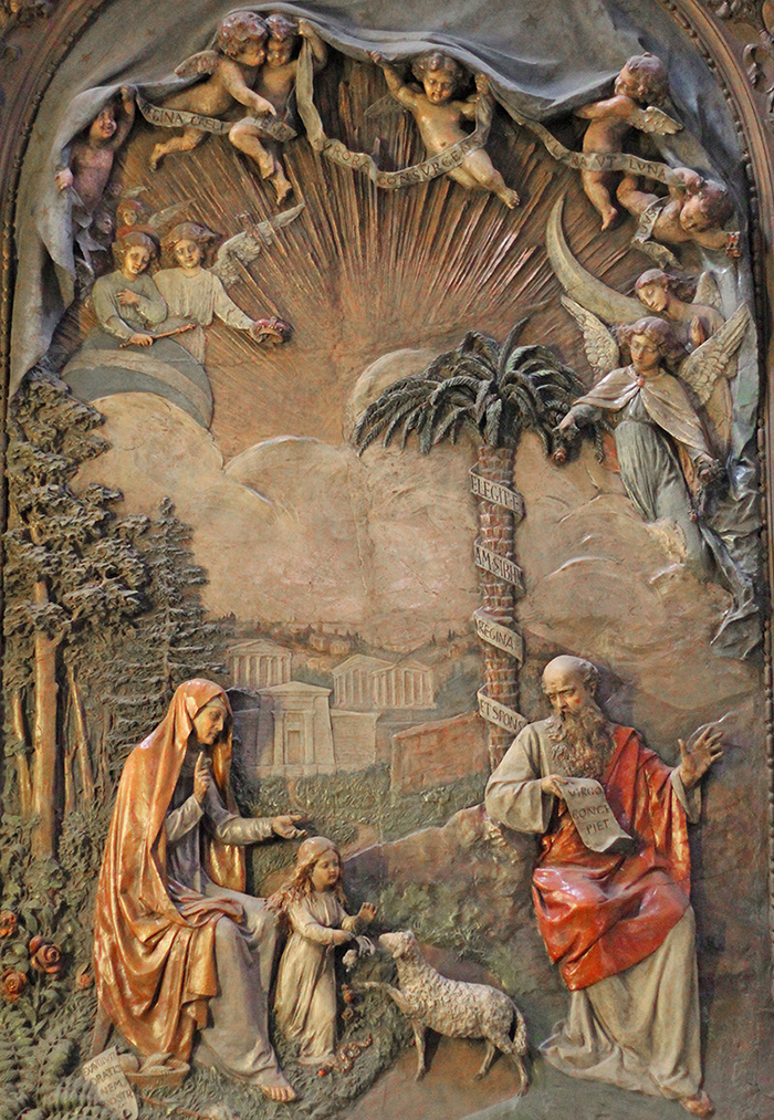 Below there is a bas-relief by Enrico Manfrini depicting the Madonna with the Child at the center, surrounded by St. Joachim,St. Anne, St. Rita and St. Anthony. It's wonderful!