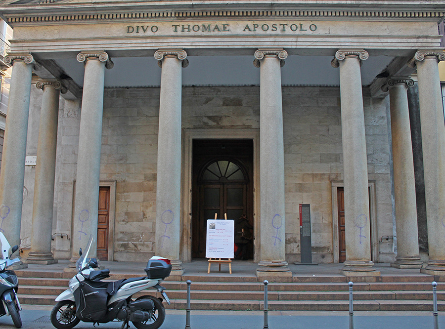 The complete name of the church is San Tomaso in Terramara. Amongst the multiple explanations for the origin of the name ‘Terramara’, a mention to an ancient Milanese legend that says a priest was buried alive here.