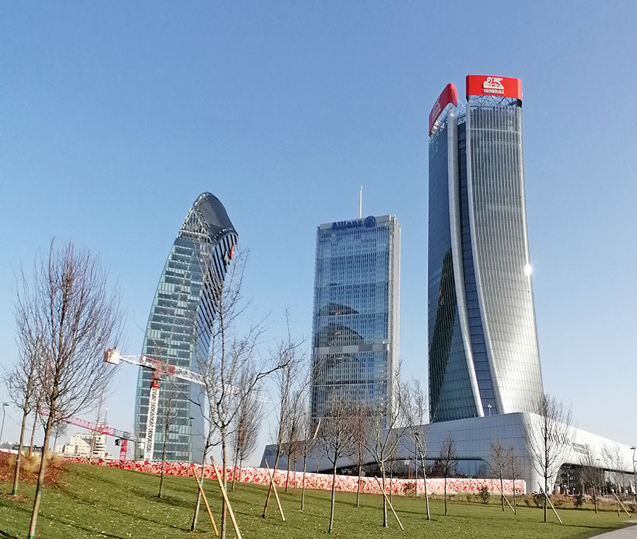 CityLife, also known as Tre Torri (Three Towers) is an amazing residential and commercial complex with wide open boulevards (one of the largest in the city and in Europe!).